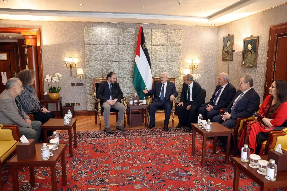 وحضر الاجتماع عضو اللجنة التنفيذية لمنظمة التحرير الفلسطينية، زياد أبو عمرو، ومستشار الرئيس للشؤون الدبلوماسية مجدي الخالدي، وسفير دولة فلسطين لدى اسبانيا حسني عبد الواحد.