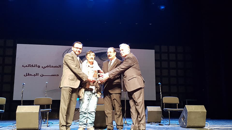 وقام بسيسو برفقة عضو اللجنة التنفيذية لمنظمة التحرير الفلسطينية محمود إسماعيل، والنائب قيس عبد الكريم، بتسليم درع التكريم للكاتب حسن البطل، وقدم له الفنان وليد أيوم بروتريهين من تنفيذه يحملان صورة الكاتب.