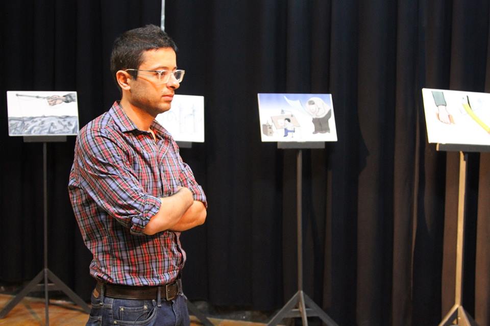 جنين-افتتح يوم أمس السبت 9/9/2017 مسرح الحرية معرض رسم الكاريكاتير “حرية التعبير”، وبالتعاون مع الشبكة الدولية لحقوق رسامي الكاريكاتير (CRNI) والصندوق الوطني للديمقراطية (NED)، من تنظيم قسم الوسائط المتعددة في المسرح، وإشراف وتدريب الفنان ورسام الكاريكاتير محمد سباعنة، وبمشاركة 14 طالب وطالبة؛ كان أحدهم رئيس مجلس إدارة مسرح الحرية بلال السعدي.