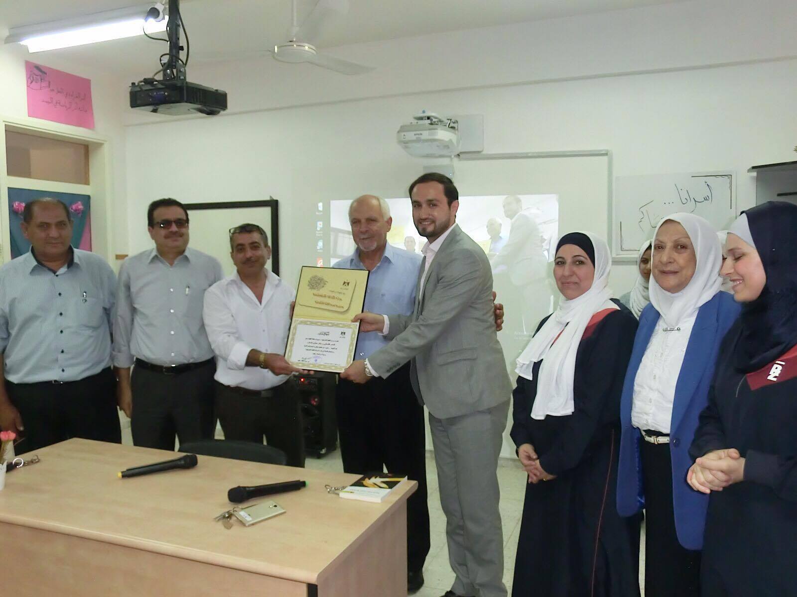رام الله- إعلام فتح- نظمت وزارة الثقافة في محافظة قلقيلية وبالشراكة الكاملة مع مديرية التربية والتعليم /مدرسة بنات العمرية الثانوية لقاءاً أدبياً شعرياً مع الشاعر جعفر حجاوي بحضور ممثل عطوفة محافظ محافظة قلقيلية خالد نزال و مدير مكتب وزارة الثقافة في قلقيلية أنور ريان ونائب مدير مديرية التربية والتعليم خضر عودة ومديرة المدرسة ريم عبد الحافظ وأعضاء المجلس الاستشاري الثقافي وثلة من الطالبات المبدعات والكادر التعليمي وذلك احتفاءاً بفوزه بجائزة الشارقة للإبداع وإصدار ديوانه " الغجرية تبحث عن أرضها " في إطار دعم القراءة وتعزيز قدرات المواهب الشابة.