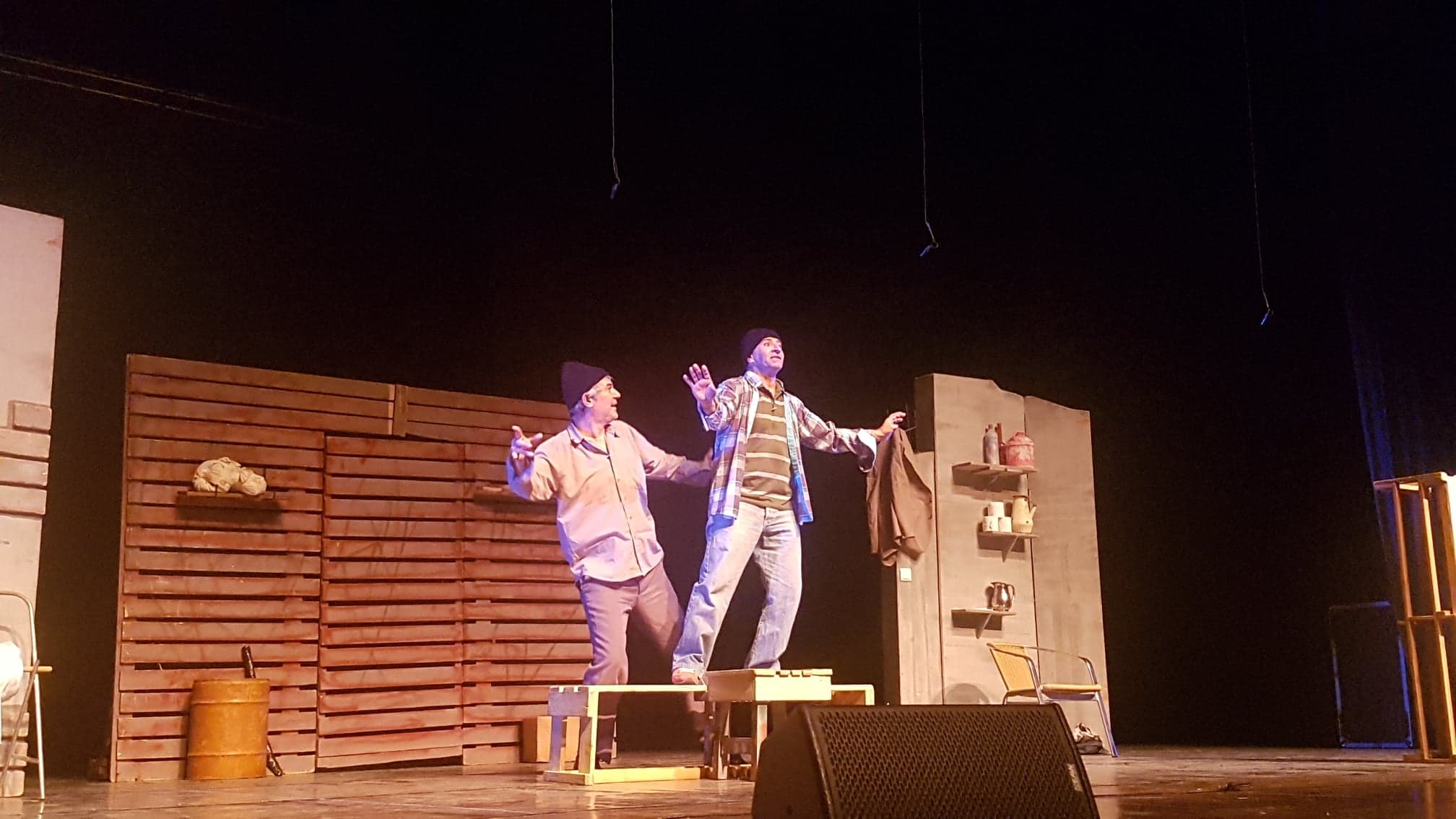 واستطاع كل من إياد شيتي وسعيد سلامة، في العمل الذي أخرجه نبيل عازر، انتزاع قهقهات الحاضرين، رغم مأساوية الحكاية، فكانت "كوميديا" قاتمة كحيوات الفلسطينيين، وخاصة العمال الفلسطينيين العرب من الداخل الفلسطيني، أو حتى من الضفة الغربية بما فيها القدس أو من قطاع غزة.