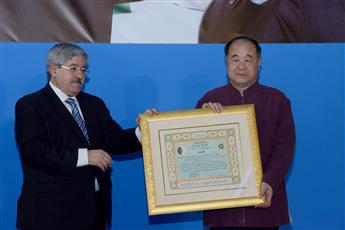 الجزائر- رويترز- كرمت الجزائر الروائي الصيني مو يان الحائز على جائزة نوبل للآداب عام 2012 في افتتاح الدورة الثالثة والعشرين من معرض الجزائر الدولي للكتاب، ومنحته وسام الاستحقاق الوطني.