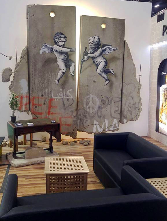 الفنان بانكسي يبهر العالم بلوحة فنية عن جدار الفصل في معرض لندن السياحي الدولي
