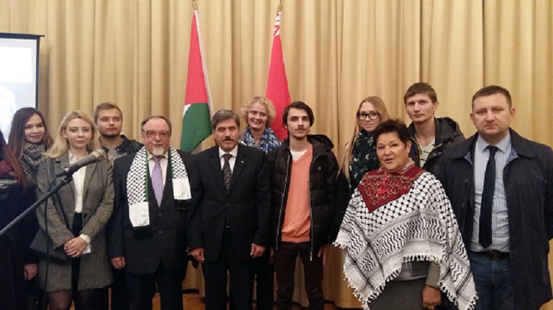 وفا- نظم بيت الصداقة بين الشعوب في العاصمة البيلاروسية "مينسك، تحت رعاية سفارة دولة فلسطين لدى جمهورية بيلاروسيا، أمسية شعرية بعنوان روائع الشاعر الكبير محمود درويش، وذلك لأول مرة باللغة البيلاروسية.