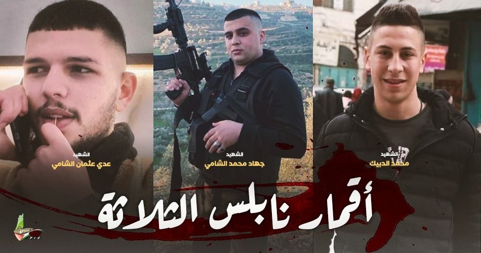وأكدت وزارة الصحة، نقلا عن الهيئة العامة للشؤون المدنية، استشهاد كل من: جهاد محمد وصفي الشامي (24 عاما)، وعدي عثمان رفيق الشامي (22 عاما)، ومحمد رائد ناجي الدبيك (18 عاما)، عقب إطلاق الاحتلال النار على المركبة التي كانوا يستقلونها قرب حاجز صرة العسكري، جنوب غرب نابلس، واعتقال الشاب الرابع ابراهيم عورتاني.