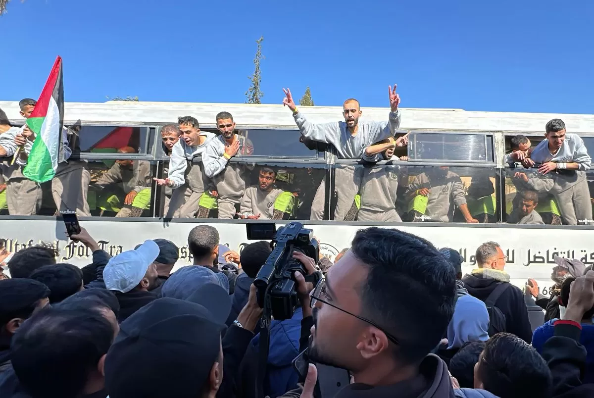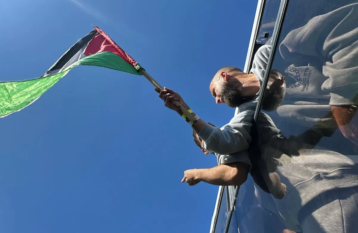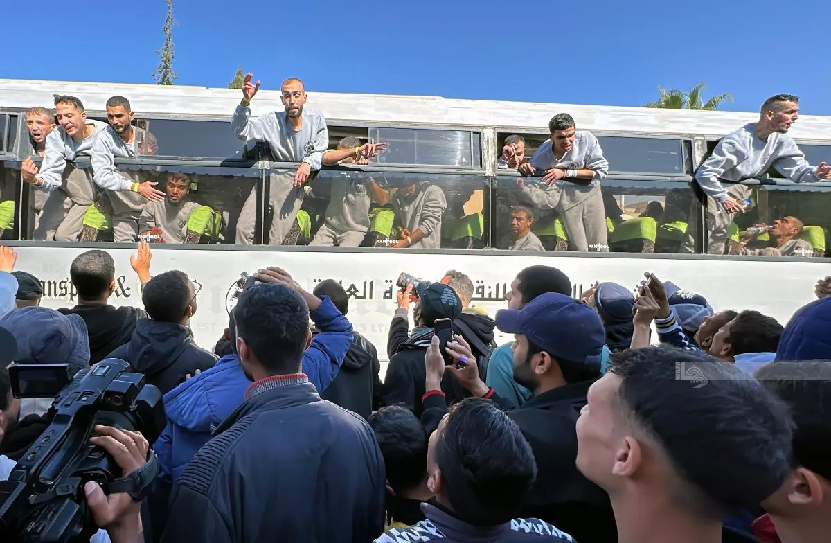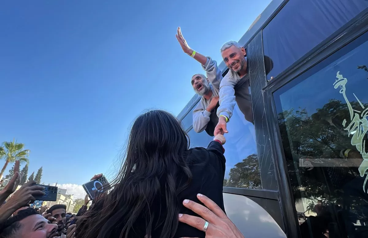 اثناء استقبال محررين من معتقلات الاحتلال في خانيونس