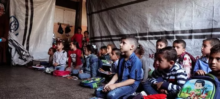 ورغم الأثاث القديم وقلة الرسومات التي تزيّن جدران الصفوف في المدرسة، إلا أن حماس الأطفال للعودة إلى مقاعد الدراسة بعد أشهر قضوها في مراكز الإيواء ومخيمات النزوح هربًا من القصف الإسرائيلي، لا يزال قويًا.