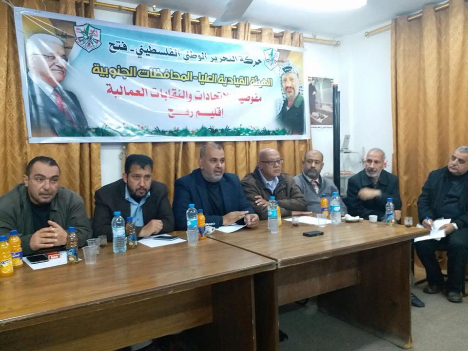 غزة: الإتحادات و النقابات العمالية تعقد اجتماعات في الاقاليم وتدعم موقف الرئيس والقيادة