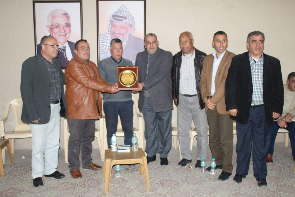 وفي نهاية الاجتماع، قدم مفوض الاتحادات والنقابات في الهيئة القيادية، جمال عبيد، درع العاصفة، وفاء للقائد حلس باسم المفوضية، بمناسبة يوم العمال العالمي، تقديراً لجهوده الكبيرة للارتقاء بالحركة إلى مستوى التحديات، وإعادة الاعتبار والهيبة لها.