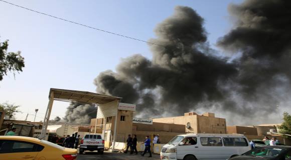 ودوت صفارات الإنذار في أنحاء مجمع السفارة الأميركية في المنطقة الخضراء المحصنة، وفقا لمصدر أميركي ولدبلوماسي يقيم في منطقة قريبة.